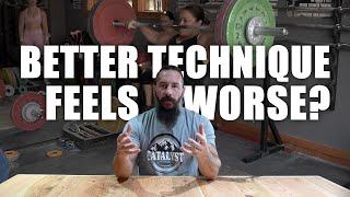 For example, if the bar is far away in your pull under in the snatch, you can practice and train better upper body mechanics until they’re perfect, and it won’t make one bit of difference if the actual reason the bar is far away is that you’re smackapulting it out with your hips as you finish the pull.